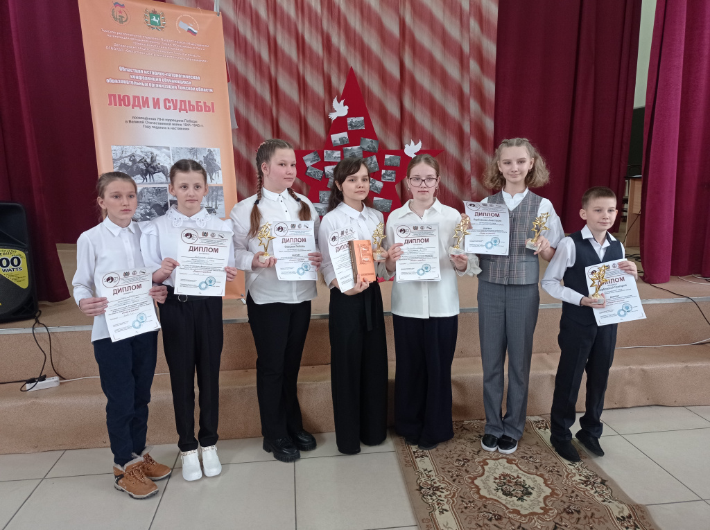 – Швачунова Юлия, обучающаяся 7 класса МБОУ «Первомайская СОШ» Первомайского района. Название работы: «Жители Первомайского района, служившие в томской 166 стрелковой дивизии». Руководитель – Мартыненко Юрий Анатольевич.