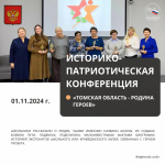 1 ноября 2024 года состоялась областная историко-патриотическая конференция обучающихся образовательных организаций «Томская область – Родина Героев» В конференции приняли участие Далее..