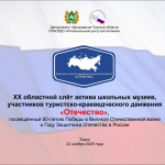 Приглашаем к участию в XIX областном очно-заочном слёте актива школьных музеев, участников туристско-краеведческого движения “Отечество”, посвященного 80-летию Томской области К Далее..