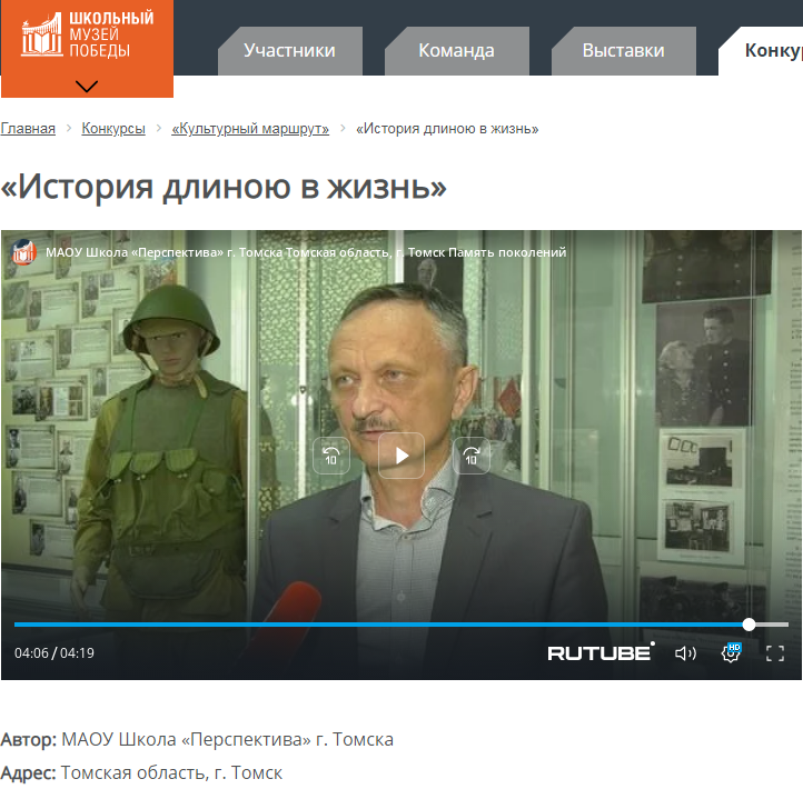 “История длиной в жизнь” (МАОУ Школа «Перспектива» г. Томска) – https://schoolvictorymuseum.ru/konkursy/vserossiyskiy..