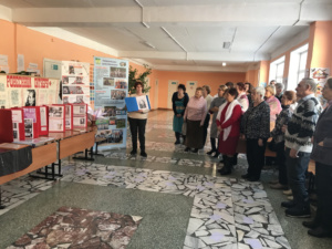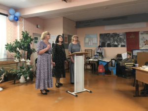 Затем все гости были приглашены в рекреацию начальных классов, где открылись выставки «Личность учителя на фоне эпохи», представленные музеем истории образования совместно с Рыбаловской школой и музеем «Отечество» МАОУ «Моряковской СОШ» Томского района. Юноши 8-го класса рассказали и показали книги учителей и про учителей, буклеты и исследовательские работы, приготовленные специально к этому событию. А руководитель музея из Моряковки представила на выставке богатый материал об учителях данной школы. Л.А. Мелитдинова, руководитель музея Нелюбинской средней школы, показала ролик про руководителя музея, которая длительное время самоотверженно работала в нем.