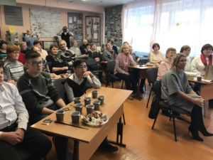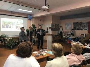 Затем все переместились в музей, а это актовый зал школы и за празднично накрытыми столами, за чаем слушали рассказ руководителя музея, которая возглавляет его 17 лет, выполняли интересное задание, сочиняли стихи в форме буриме. Так как за столом собрались друзья музея, здесь звучали теплые поздравления, восторженно встречали выступления артистов ДК д. Нелюбино и трио ветеранов педагогического труда Рыбаловской школы «От всей души». Музей не только принимал подарки, но были вручены благодарственные письма детям-активистам музея и всем, кто помогает и поддерживает данный музей. Спасибо всем, кто присоединился к нашему празднику. Фраза из песни, которую все подхватили в завершении праздника: «Есть только миг между прошлым и будущим – именно он называется жизнь», очень ярко отразила наше состояние этого праздничного вечера.